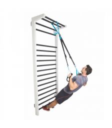 Οι ιμάντες είναι ρυθμιζόμενοι και διαθέτουν λαβές για τα χέρια και τα πόδια, προσφέροντας ευελιξία και προσαρμοστικότητα σε διάφορες ασκήσεις.